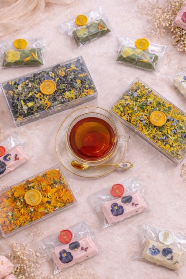 【9個セット ギフトBOX入り】特別価格 2,500円 (税込) 自分へのご褒美や大切な方への贈り物に最適なセットです。 厳選されたオリジナルブレンドティー9種を、華やかなギフトボックスに詰め合わせました。 (通常価格 2,650円のところ) セット価格:2,500円(税込) 内容:ブレンドティー 9回分 + ギフト梱包(400円相当込み) あなただけの特別な花茶:オリジナルブレンドティー 1. 世界に一つ。心と体に寄り添う「飲むお守り」 当社のオリジナルブレンドティーは、あなたの「今の状態」と「理想の姿」を深くヒアリングさせていただき、専属のブレンダーが調合する特別な花茶です。 「リラックスしたい」「美容を整えたい」といった具体的なお悩みだけでなく、体質、心の状態、好みのアロマまですべてを考慮 。「既製品では満足できない」「本当に自分に合う一杯が欲しい」と願うあなたのための、世界に一つだけの「飲むお守り」をお届けします。 2. 【ブレンドの秘密】無農薬エディブルフラワーと機能性ハーブの融合 ① オーダーメイドの調合 ご注文時にご回答いただく専用フォーム (ヒアリングシート)を基に、体質(冷え、むくみなど )、心の状態(緊張、落ち込みなど )、そして苦手な味や香り までを細かく分析します。 ② 安心と美しさの融合 料理を彩る無農薬のエディブルフラワー と、お悩みにアプローチする機能性ハーブをバランスよく組み合わせます。それぞれの素材の機能性だけでなく、美しい見た目と心地よいアロマにも徹底的にこだわります。 ③ 苦手な要素を回避 「苦味」「渋み」「酸味」といった苦手な要素 や、体質的に避けたい原料 を事前に確認することで、最後まで美味しく、安心して飲み続けられるブレンドを設計します。 3. 【お届けの流れ】丁寧に、あなたのもとへ ご注文時に、フォームにご回答いただき ,それを基にブレンドを作成いたします。 一つ一つ丁寧に手作業で調合するため、お届けまでにお時間をいただく場合がございますが、発送完了次第、メールにてご連絡させていただきます。心待ちにしていてください。 オリジナルブレンドティー作成フォームはこちら https://docs.google.com/forms/d/e/1FAIpQLSesWMT-7ksfxCi1TJVU-hEwbmXakflVE0NtzQgseLVSO3D61g/viewform?usp=header